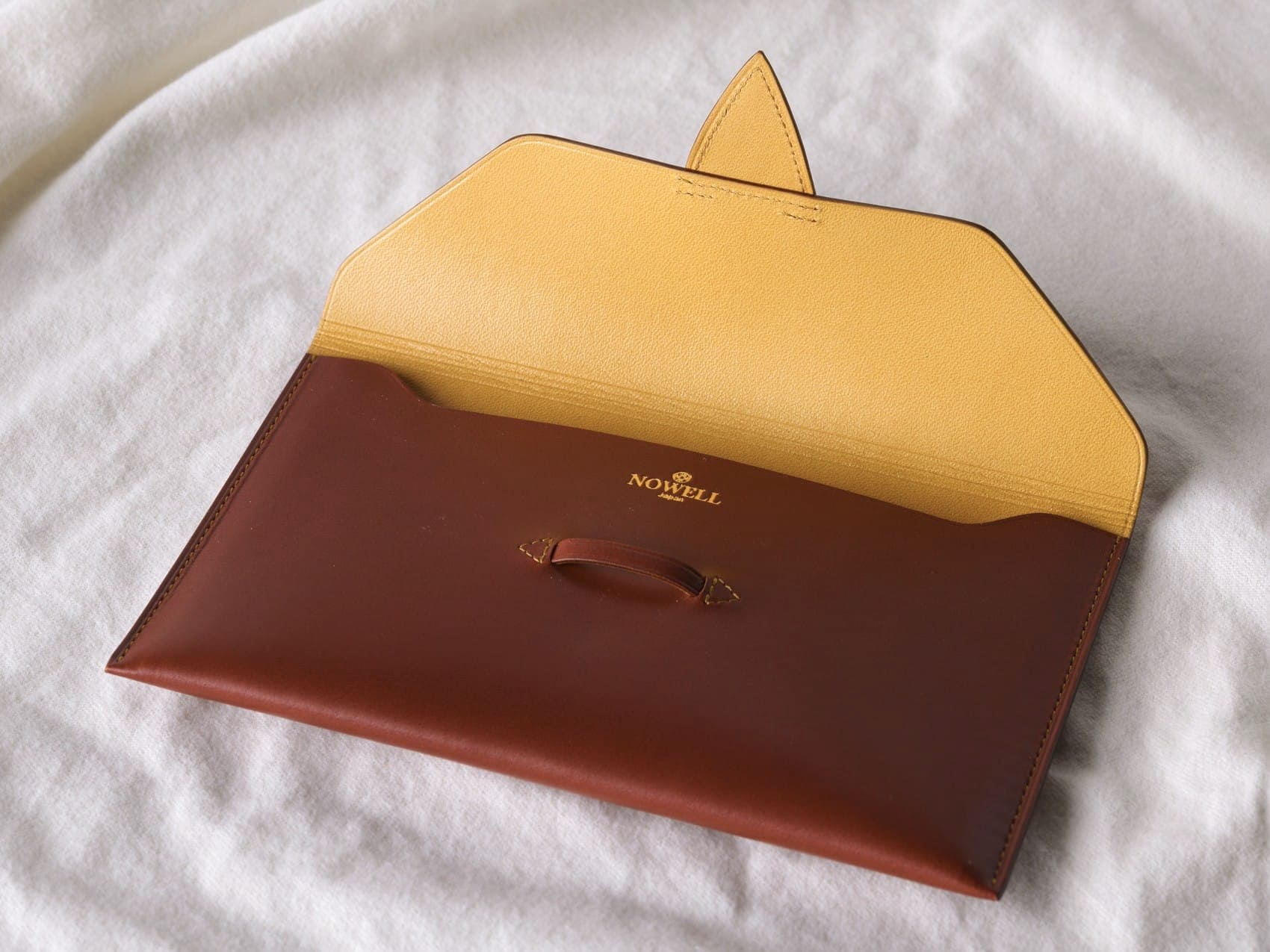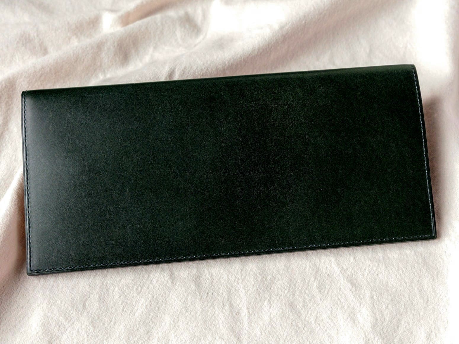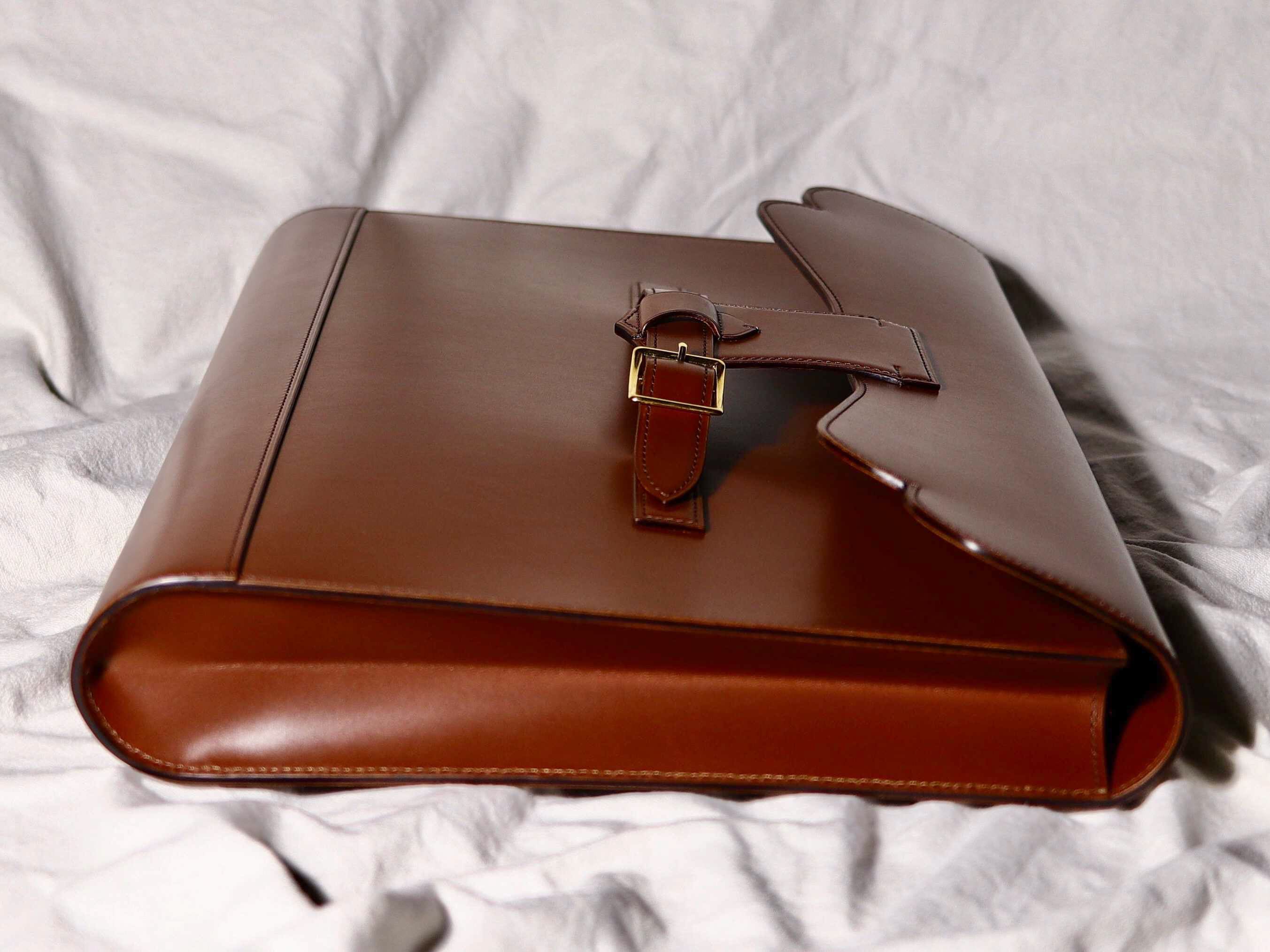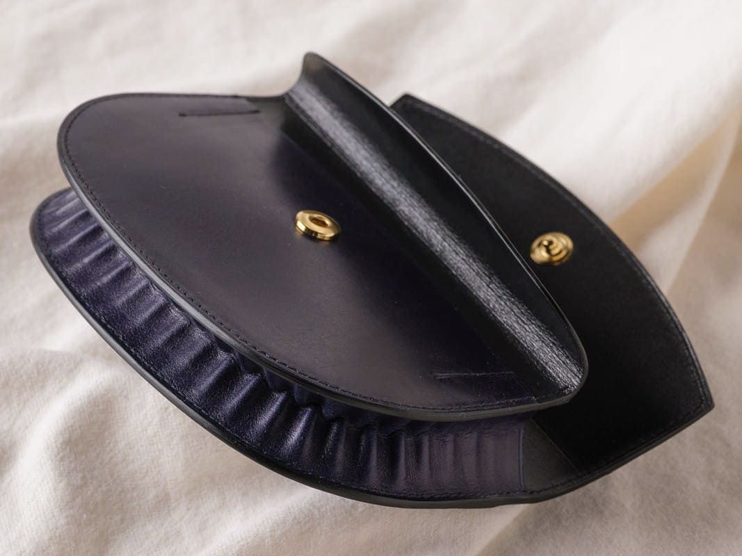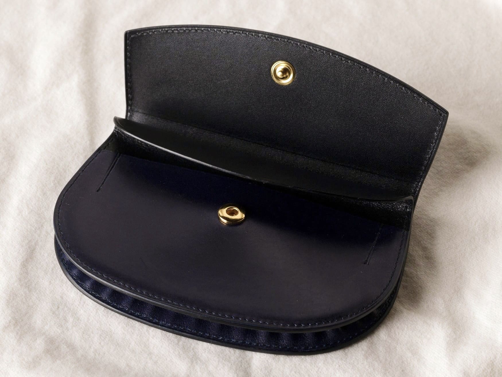 19世紀末から20世紀初頭の革小物は、曲線を多く用いた装飾的デザインが多く、優雅さに何よりも重きが置かれていました。各パーツの革は非常に薄く漉かれ、繊細なミシン目で縫製され大変丁寧に仕上げられています。しかしそれらは同時に高い技術力を要し、生産上のリスクも高い上、手間がかかり過ぎるものでした。その為、時代の流れとともに次第に簡略化され、現代ではほぼ見かけることはなくなりました。素材の面では、エキゾチックレザーと並び、繊維のキメが細かいカーフレザー(仔牛の革)が最もエレガントな素材だとされ、それは今なお紳士靴の世界においても変わっていません。